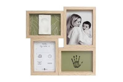 El Marco de Rompecabezas - Ivy Grey es un grupo de varios marcos individuales para mostrar la foto del bebé y las huellas con arcilla e tinta. También viene con un póster de nacimiento para escribir toda la información del nacimiento: nombre, peso, altura, así como la hora y día de la llegada del bebé. Los fondos de los marcos son personalizables con un fondo de hojas o un color verde sólido. Incluido en el kit hay arcilla hipoalergénica, rodillo, almohadilla de sello sin tinta e instrucciones para crear fácilmente tus impresiones. La tecnología "Smart Inkless Touch" garantiza impresiones altamente detalladas sin requerir que la piel del bebé toque alguna tinta.
